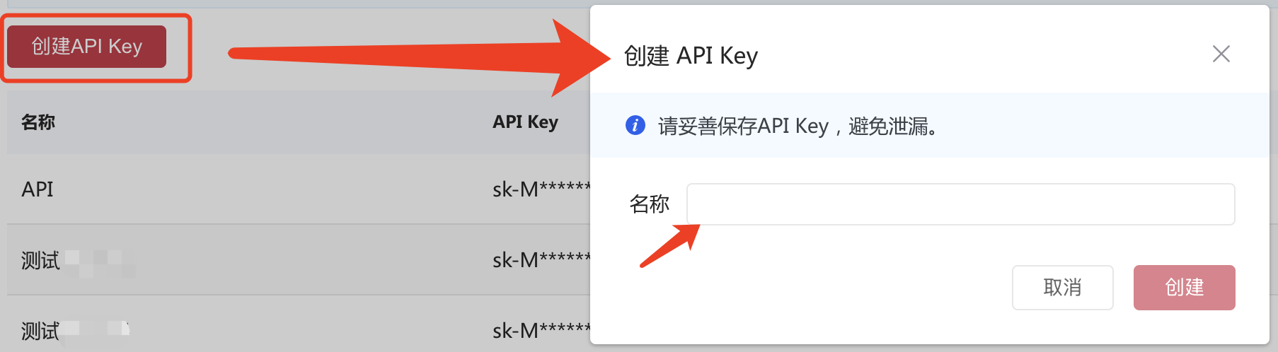 - API Key用于计费统计,为了防止费用损失,请勿随意与他人共享。