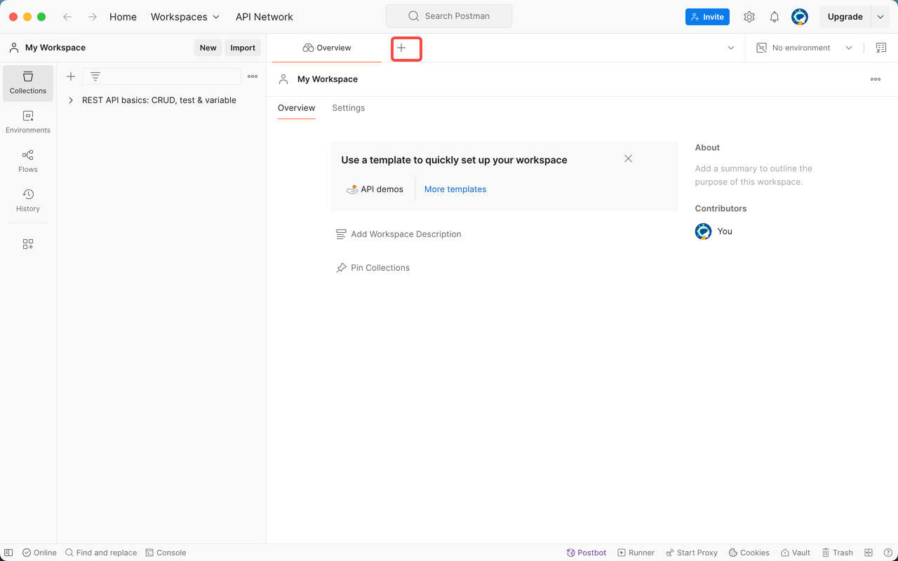 在Postman中,在页面上点击“+”,新建一个请求