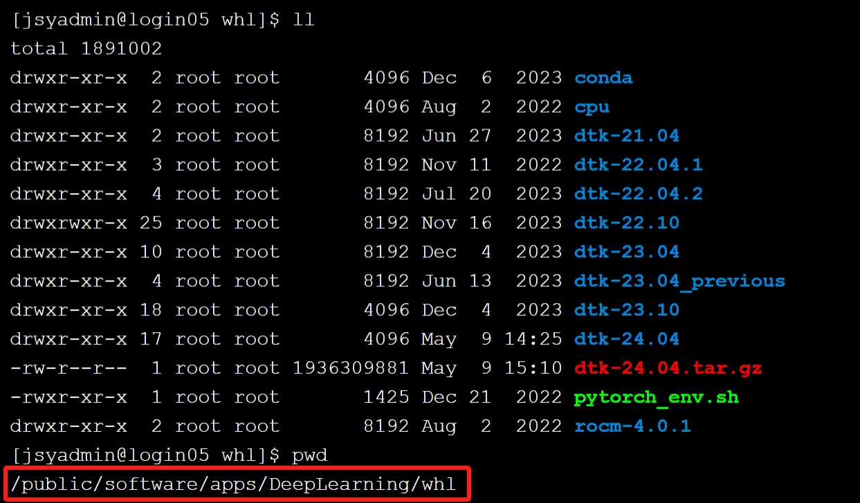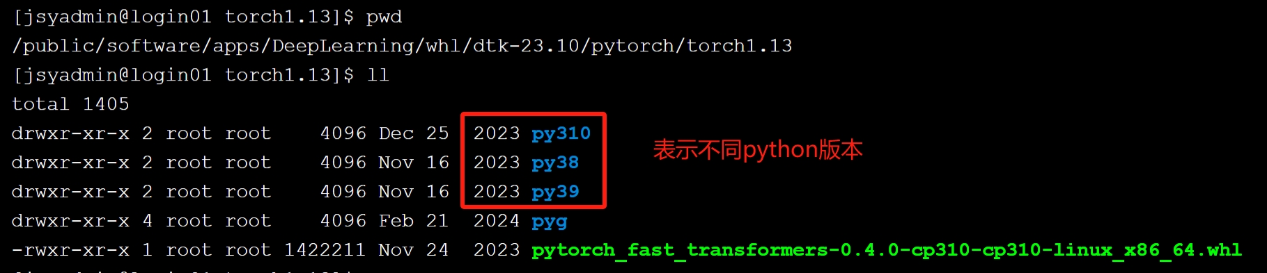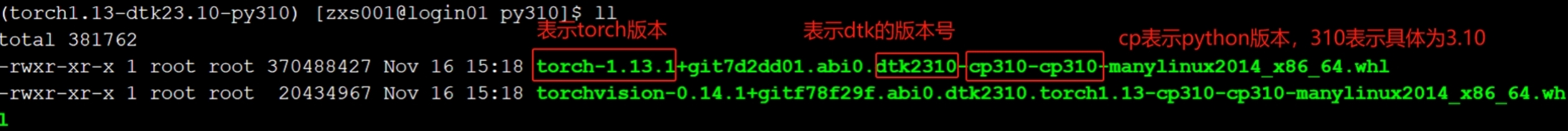 cd /public/software/apps/DeepLearning/whl/dtk-23.10/pytorch/torch1.13/py310 #切换到需要包的路径