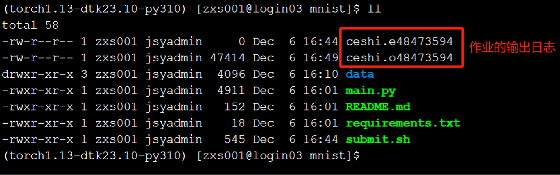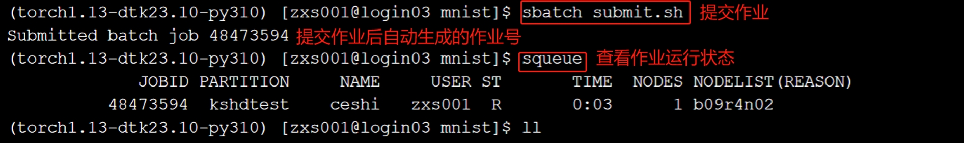 python3 -u main.py #自己需要运行的程序,可以根据需要自行替换提交作业: sbatch submit.sh