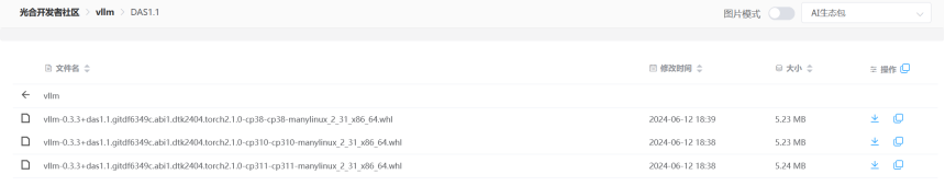 最新vllm版本会第一时间发布,可以从光合开发者社区-DAS获取