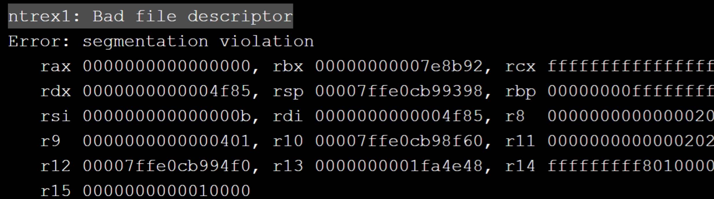 (5)报错:ntrex1: Bad file descriptor。fnameopen-new-file: No such file or directory