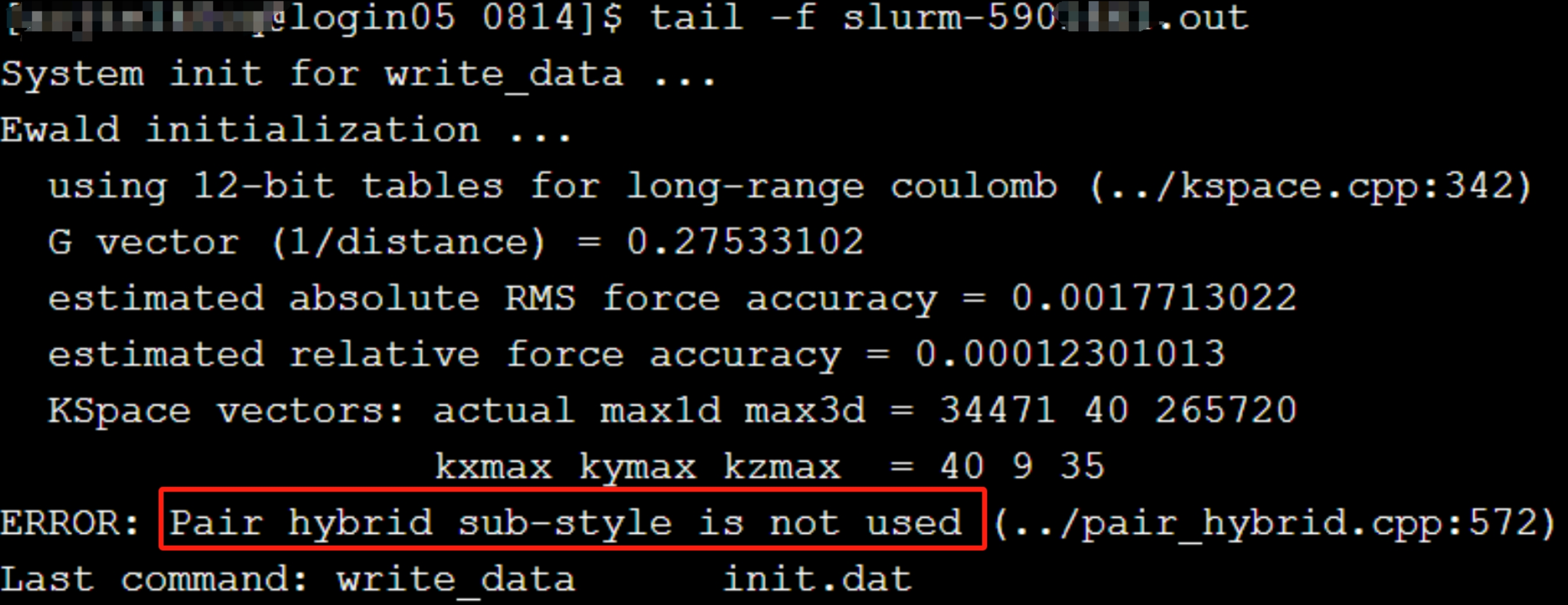 (1)报错:Pair hybrid sub-style is not used