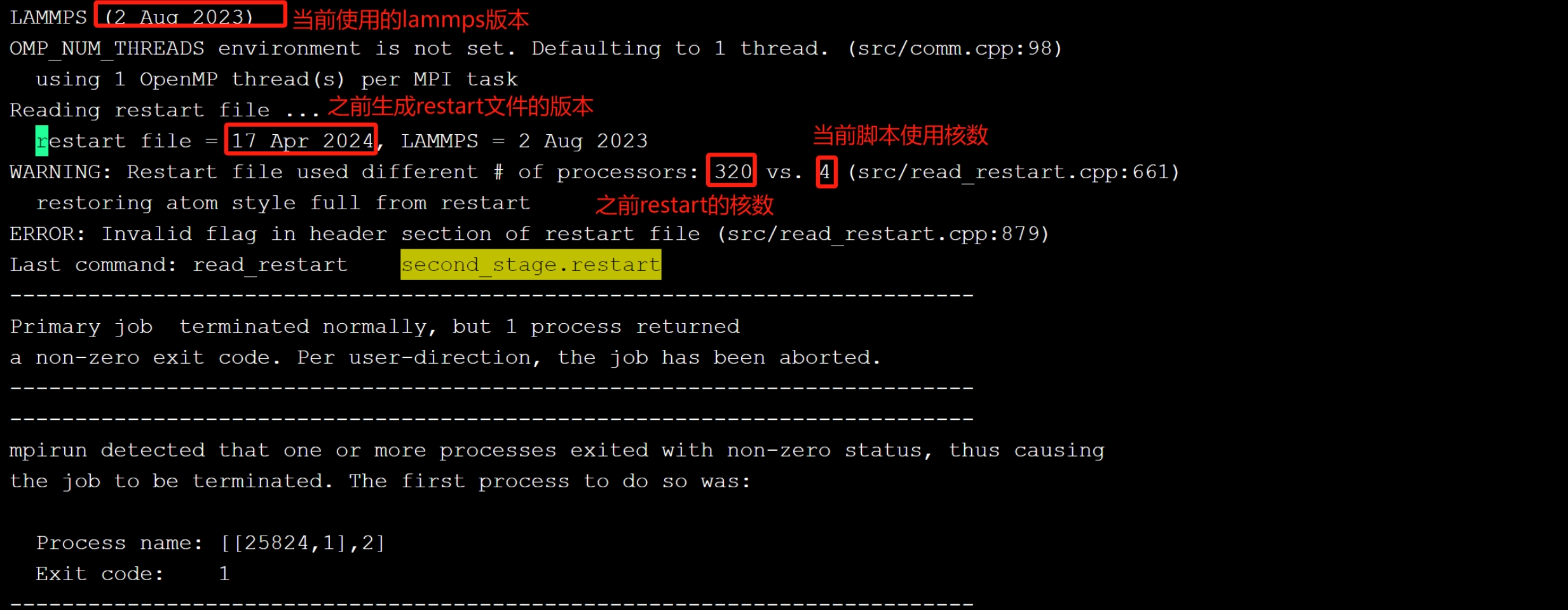 (2)重启续算报错:ERROR: Invalid flag in header section of restart file